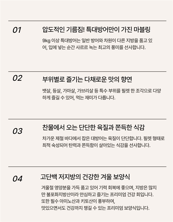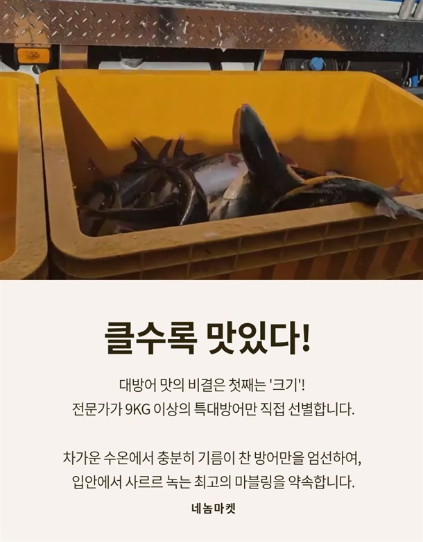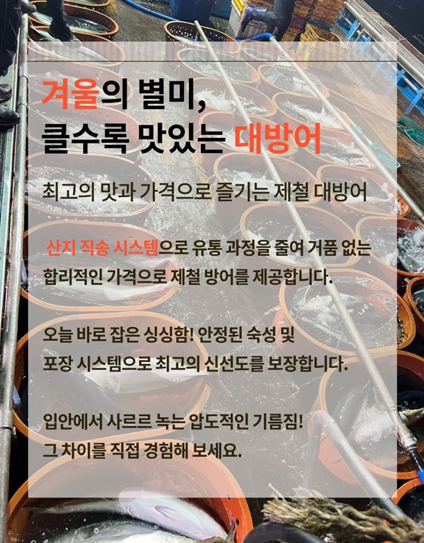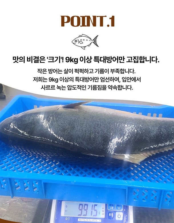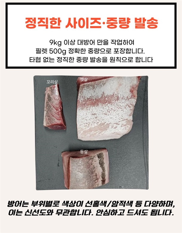 | 3.원재료 및 함량 | 대방어 100% |