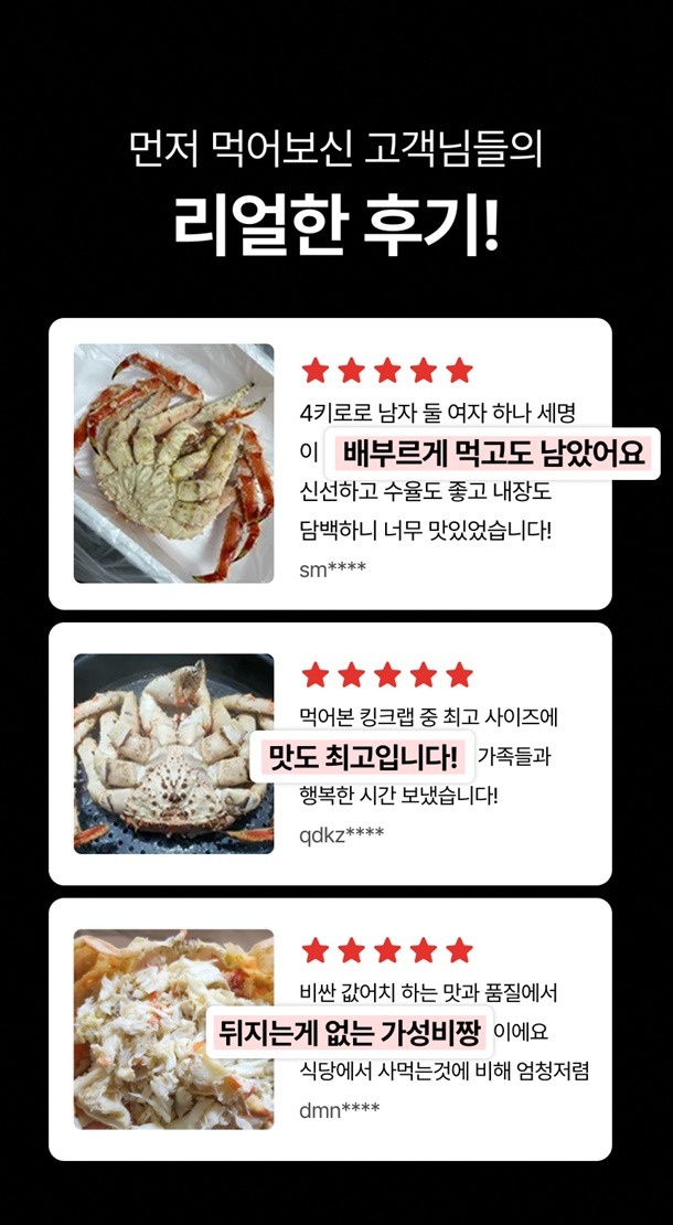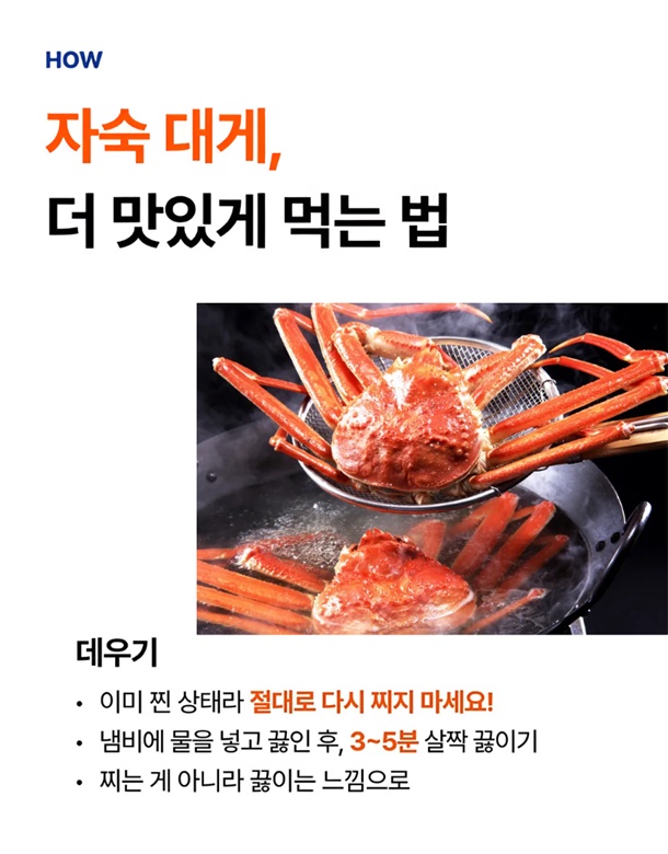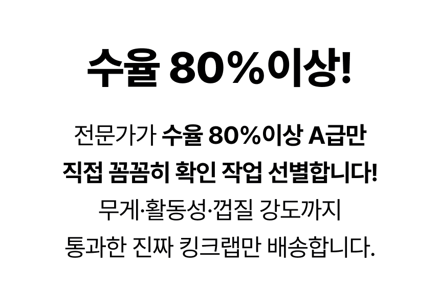 | 5.특이사항 | 찜 작업시 생물 무게에서 수분이 30~40% 감량이 된다는 점 양해부탁드리겠습니다 |