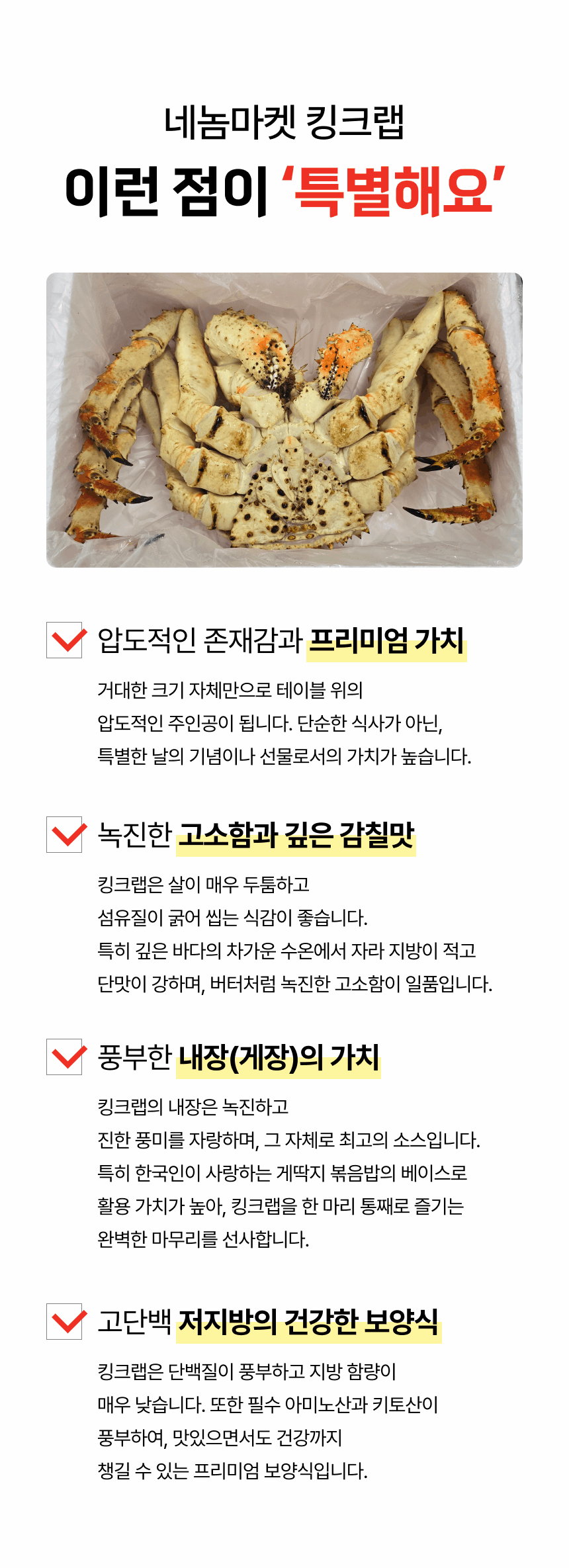 | 3.원재료 및 함량 | 킹크랩 100% |