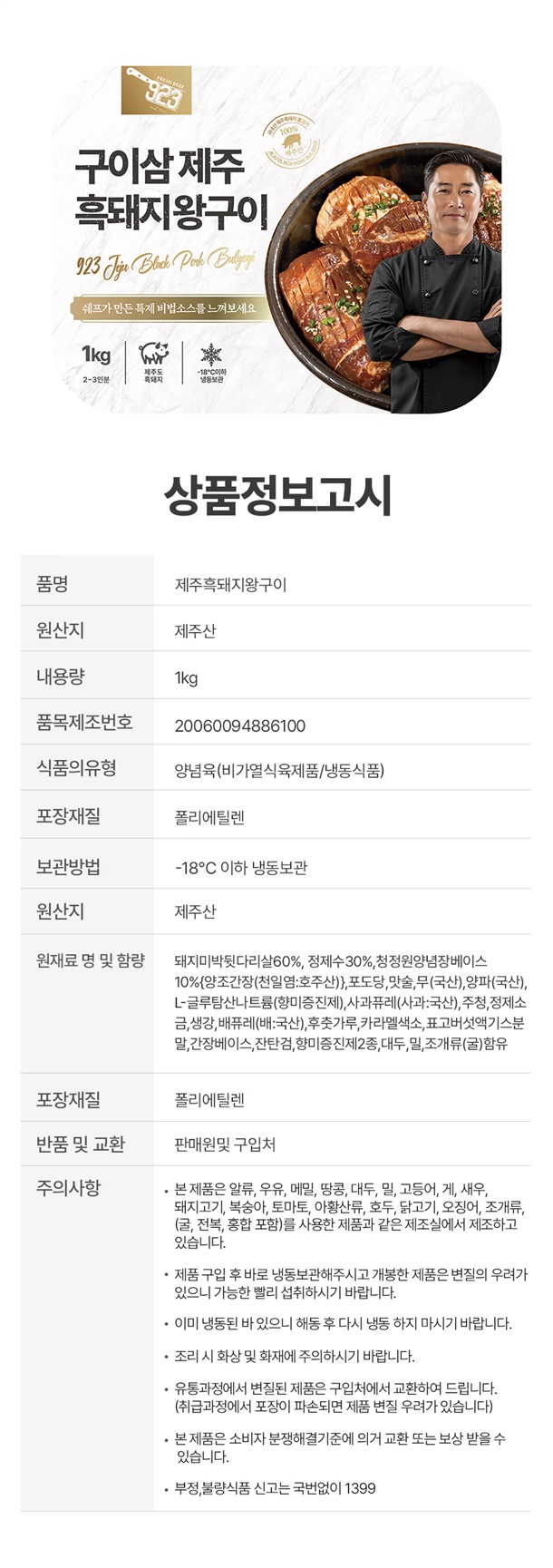 | 1.포장단위별용량 | 흑돼지 왕구이 1kg |