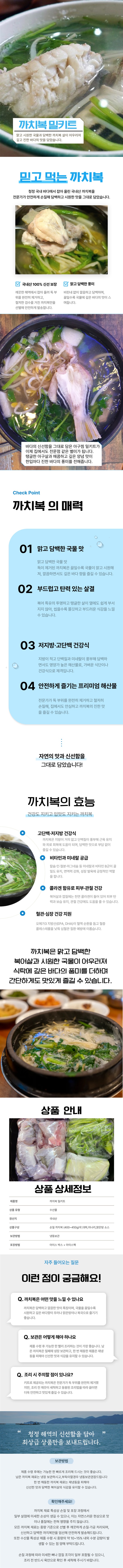 | 1.포장단위별용량 | 까치복 손질후 400-450그램 내외 무,대파,미나리,맑은탕 소스 생물 조업이 안되는경우 냉동으로 출고될수있습니다 |