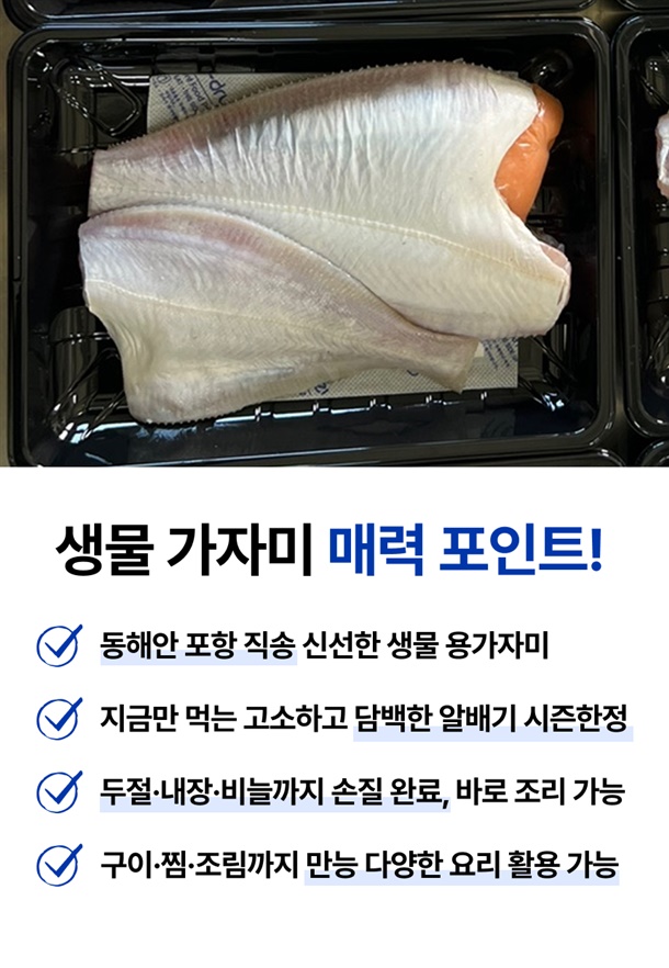 | 3.원재료 및 함량 | 가자미 100% |