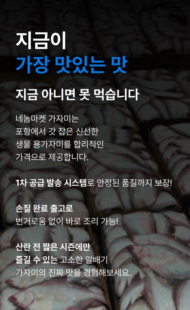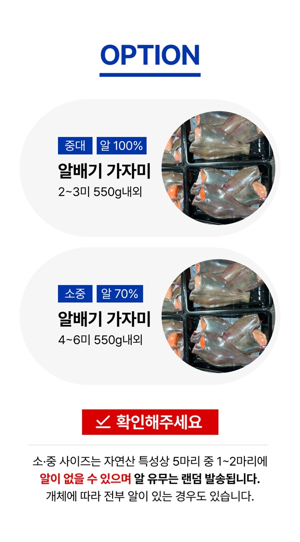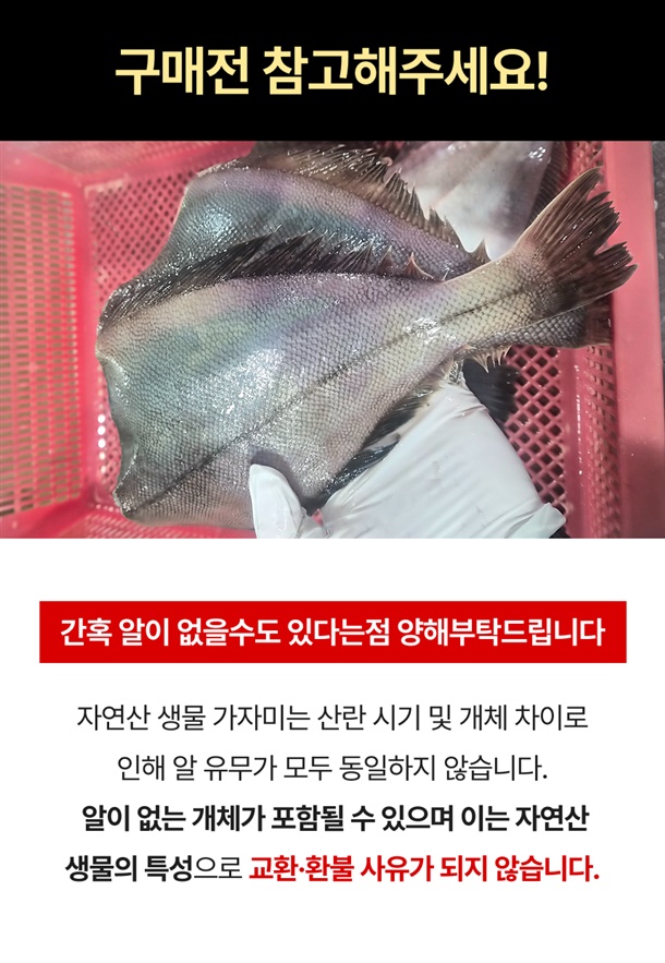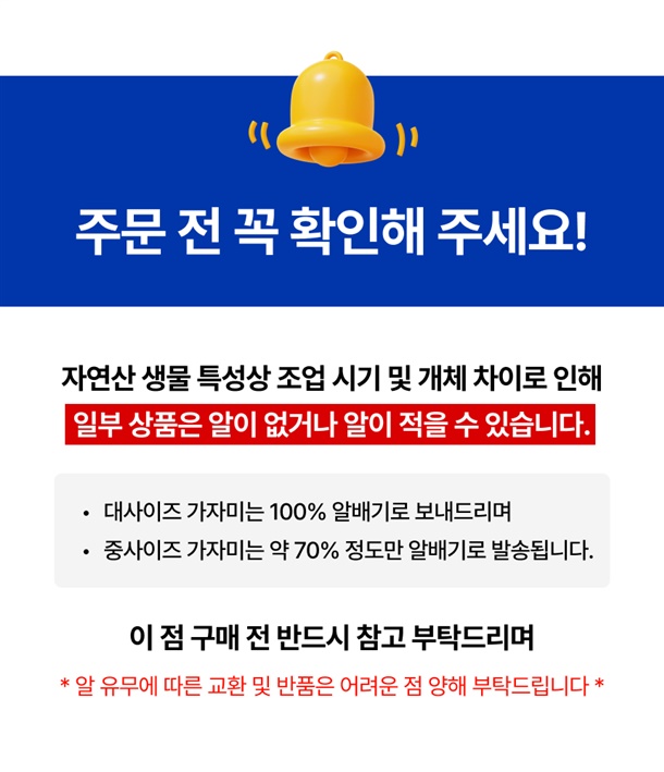 | 택배 배송 | 로젠택배 14시 이전 주문시 당일발송 ( 생물상품이다보니 기상악화 및 조업난황등의 이유로 배송이 지연될수있습니다) |