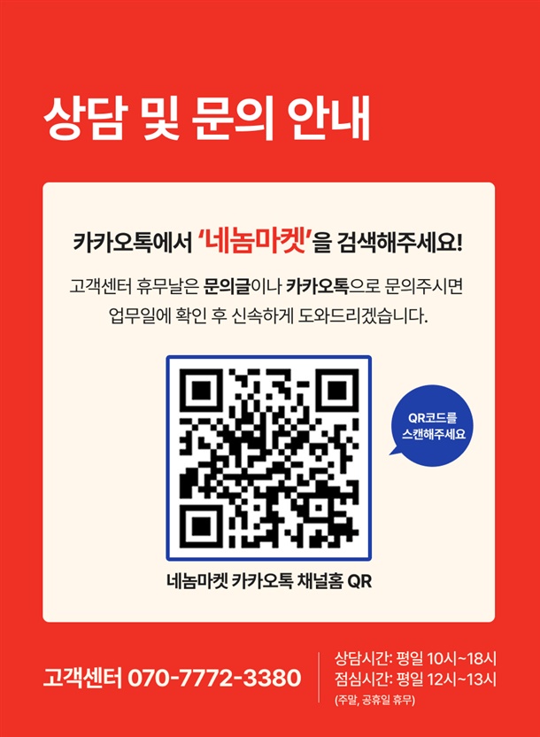 · 상품 불량 사유와 사진을 남겨 주시면 빠른 처리가 가능합니다.